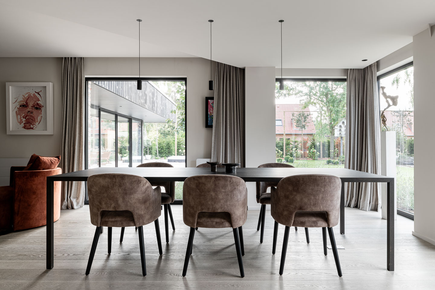 Les menuiseries extérieures, pensées comme des respirations, prolongent l’intérieur vers l’extérieur dans un mouvement fluide, presque imperceptible.